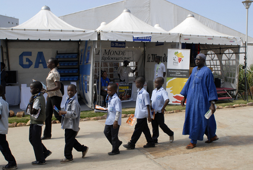 Me voilà donc au Village de la Francophonie, pratiquement désert en ce vendredi matin, fraîchement débarquée dans la capitale sénégalaise pendant la nuit, les yeux encore bouffis par le décalage horaire. C’est là que je reprends contact avec le Sénégal, après plus d’un an d’absence. Depuis mon premier séjour en 2011, Dakar est mon chez-moi. Fébrile, je retrouve des amis, des collègues, que j’ai connus par le biais de la Francophonie. Émue, je dois dire, devant tous ces visages que je revois en une seule matinée… Mais de sujets d’articles, il n’y a pas encore traces.