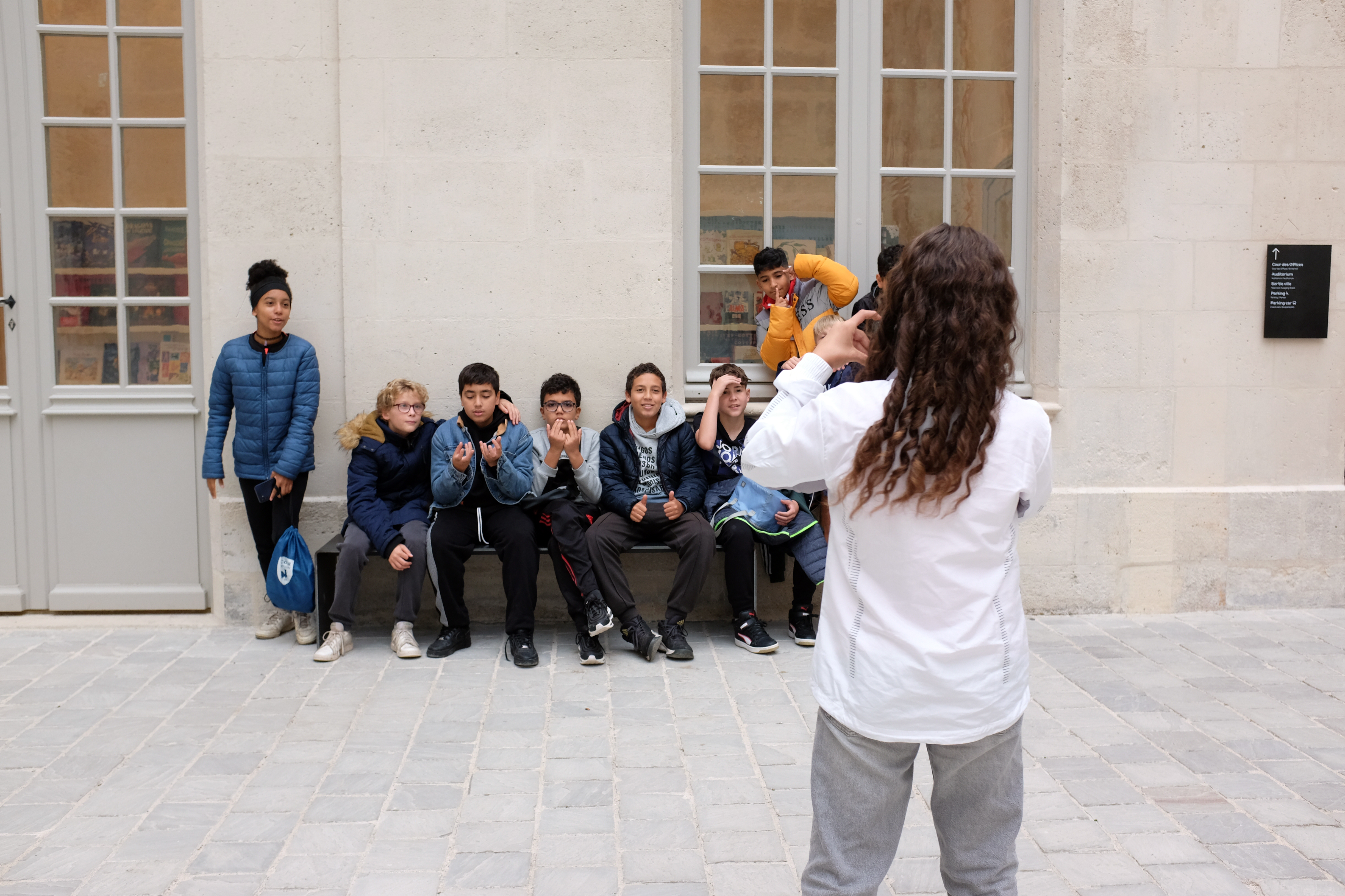 Enfin, le car pose la troupe devant la Cité internationale de la langue française... Surprise, Monsieur, le Maire d’Angoulême, en mode vacances, attend ses jeunes citoyens – et sa conseillère municipale - mains dans les poches de son jean, il papote avec eux, ne rechignant pas à se faire prendre en photo par une nuée de téléphones. Puis, Sarah, guide du lieu, prend le relais. Avec un parfait naturel, la troupe entre dans le château fréquenté autrefois par Molière. Trois fois rien...
