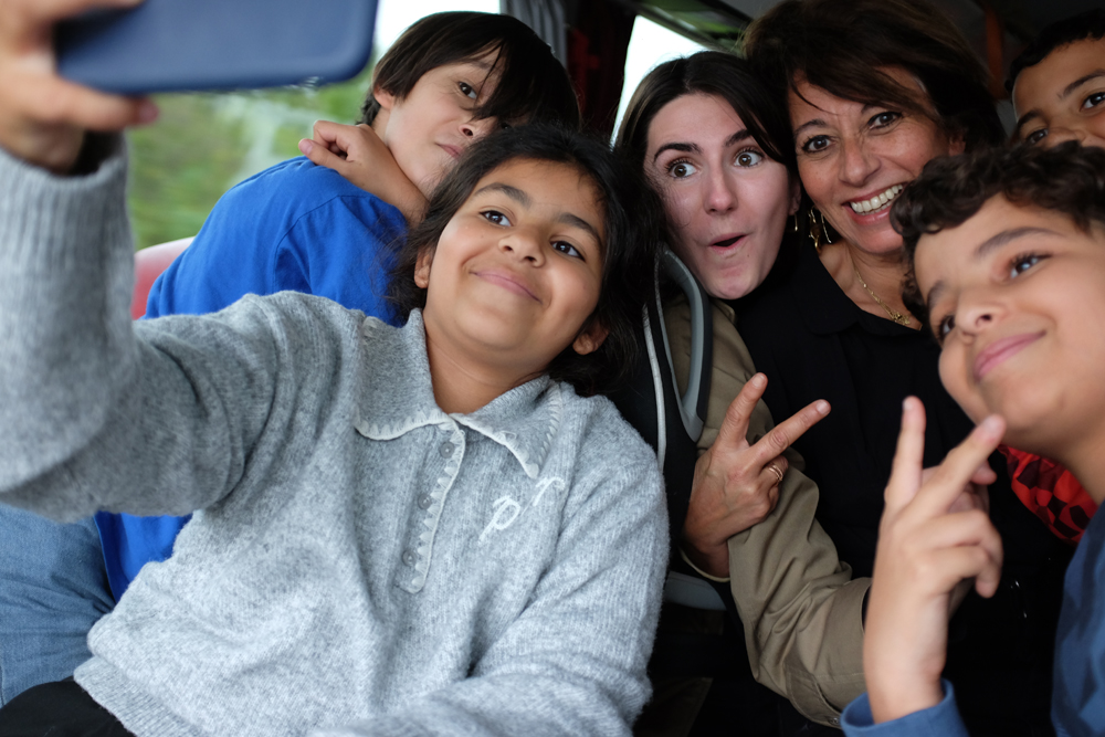 Entasser 45 gamins de 9, 10 ou 11 ans dans un car pour traverser la moitié de la France n’engendre pas la mélancolie. À cet âge, l’énergie vitale est à son pic – ils ont tout le temps faim ! -, la capacité à alterner fous rires et questions incongrues ne cesse que lorsqu’une fatigue fracassante les envoie brièvement rencontrer le marchand de sable. Cela ne dure jamais longtemps. À cet âge, les filtres sont souvent calés sur la position « off » et les surprises volent en escadrille : imaginez, le débat naissant pour savoir si le Sahara occidental est « à nous, l’Algérie » ou « à nous les Marocains ! ; goûtez à la bagarre culinaire pour départager la mousse de foie de canard et le foie gras de canard. Une question tranchée par un clinquant « quand est-ce qu’on graille ? L’arrière-petit-fils d’Audiard, serait-il dans ce car ? Entendez ce classement des plaisirs savourés dans le pays de papi et mamie : « La piscine, les filles et les massages », saperlipopette, à 10 ans !