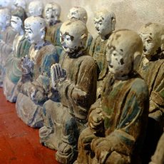 Ce soir Kouam Tawa joue Ôhó solidement accompagné par un habitué du festival, l’homme orchestre Mangane. Le premier, tout en rondeur, doux et apaisé, vient du Cameroun. Le second est longiligne, sénégalais jusqu’au bout du balafon. Ils sont accueillis au Vieux château de Vicq-sur-Breuilh, construit en 1515 comme demeure du représentant du Pape dans la région. Meurtrières et fenêtres Renaissance traduisent son équilibre entre deux époques. Grande classe. Les deux musiciens entrent dans la salle, l’ancienne cuisine, qui sera leur cocon ce soir. 36 yeux les observent déjà. Les 18 statues des disciples du Bouddha attirent l’œil et impressionnent le moins bouddhiste des visiteurs. Ambiance ! Le maître des lieux expose là sa passion autant qu’un souvenir de Conseillé culturel en Chine des années durant. Il ne se remit jamais de sa lecture jeunesse du « Lotus bleu »...